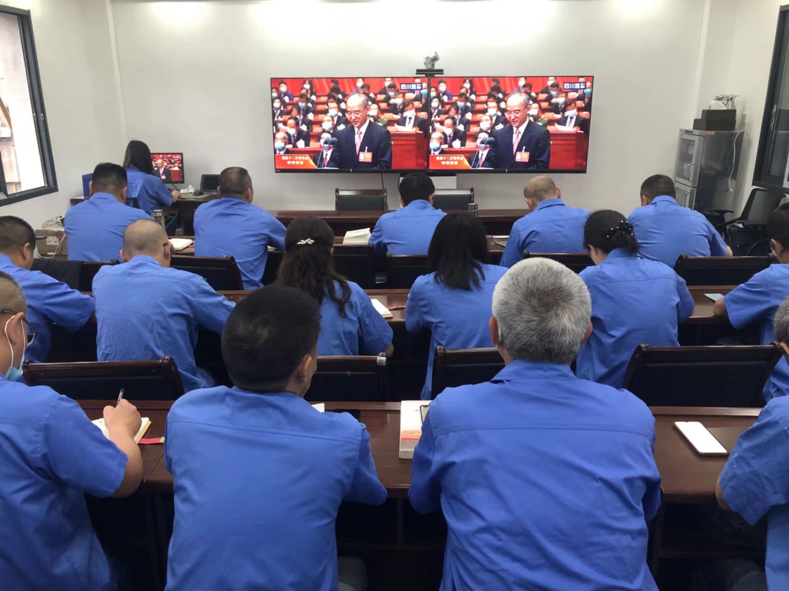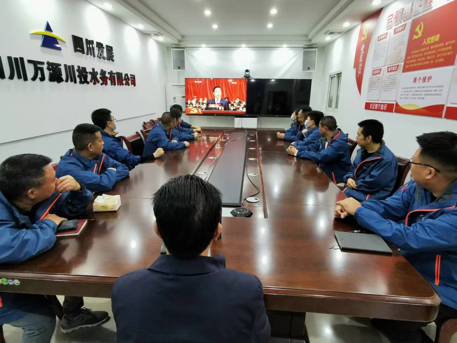 川投水务集团下属各级党组织分别在企业属地,统一认真组织集中收听收看。