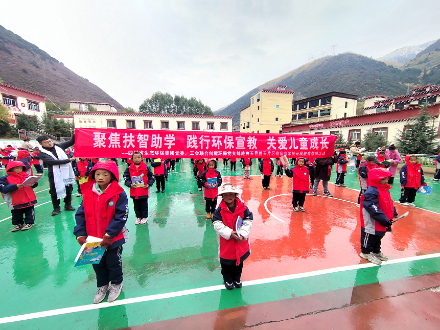 在助力产业发展的同时,工作小组专程前往白玉县盖玉片区寄宿制学校开展教育帮扶,捐赠书包、笔记本等学习用品2000余件,缓解学生用品短缺困境。工作小组还围绕“生物多样性” 开展特色宣讲,设置环保小知识互动环节,帮助学生树立生态保护理念;课后与学校教师交流,了解学生学习生活及教学需求,为后续长期教育帮扶积累了第一手资料。