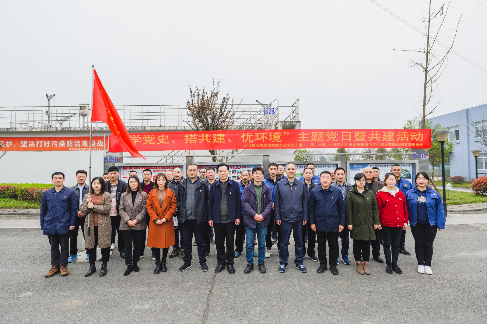 市委政法委副书记徐勇,市委政法委副书记张学伟,市委政法委副书记、市法学会常务副会长程正春,派驻市委政法委纪检监察组组长邓玉琢以及市委政法委一、二支部全体党员同志,中江水司支部书记朱禹以及中江水司全体党员同志共计40余名党员同志参加此次共建活动。