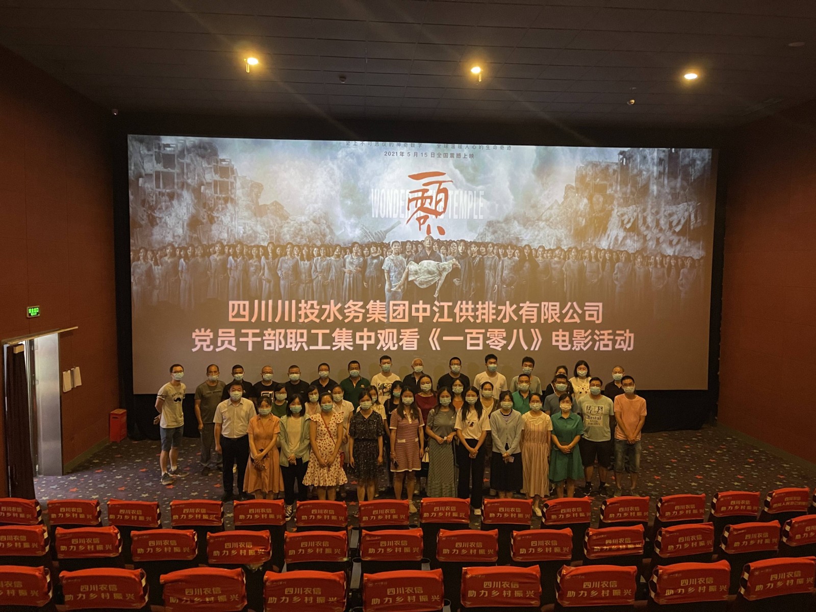 为庆祝中国共产党成立100周年,扎实推进党史学习教育,大力弘扬抗震救灾精神、民族精神和时代精神,5月20日下午,中江水司组织党员干部职工43人开展“弘扬抗震救灾精神 激发不屈奋斗力量”主题党日暨观看“电影中的党史”电影党课推荐片目《一百零八》活动。