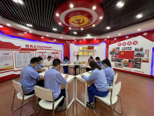 四川川投水务集团射洪水司始终坚持党建工作与生产经营工作同频共振,牢固树立起“抓党建就是抓发展,抓发展必须抓党建”的工作思路,明确部门职能职责,落实岗位责任制,健全党群相关制度,聚焦党员团员日常学习教育、读书研习、党建、企业文化展示、志愿服务活动等,依托楼层会议室、办公区域走廊、客户服务大厅打造“党群+学习”“党群+文化”“党群+服务”的多功能党群阵地,推动组织生活规范化,不断增强对党员干部队伍的教育引导,充分发挥党员干部“头雁”作用,激活基层党员队伍的内生动力。