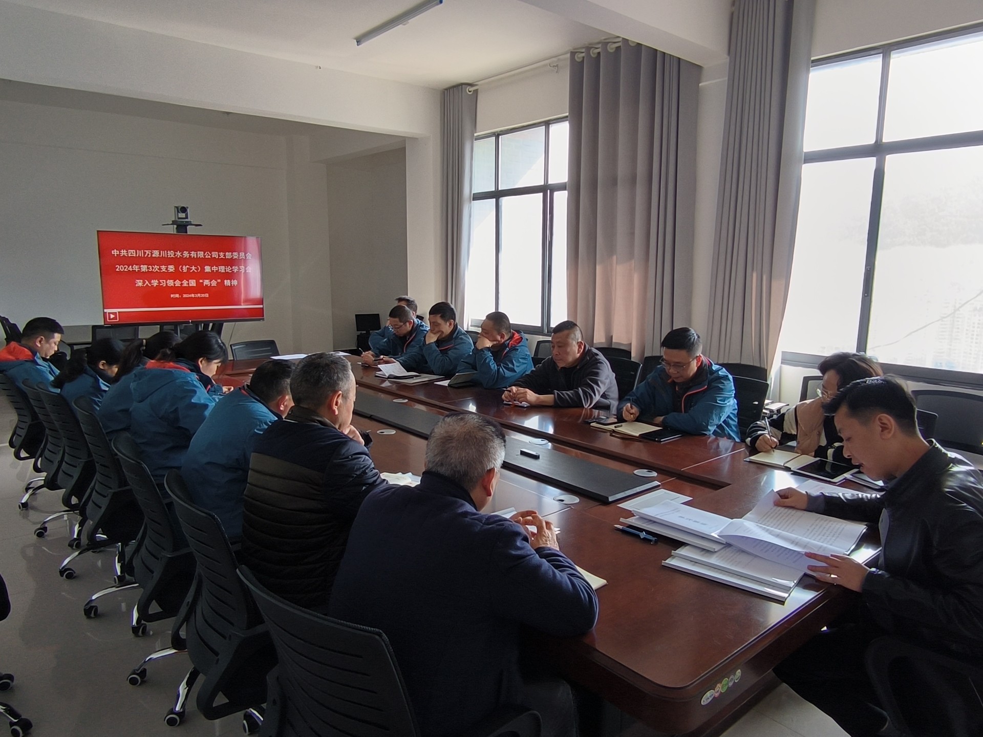 3月20日下午,万源水司组织召开支委(扩大)学习会议,学习贯彻习近平总书记在全国“两会”期间的重要讲话和全国“两会”精神。公司党支部书记、执行董事、总经理李至彬主持会议,公司领导班子成员、中层干部参加了会议。
