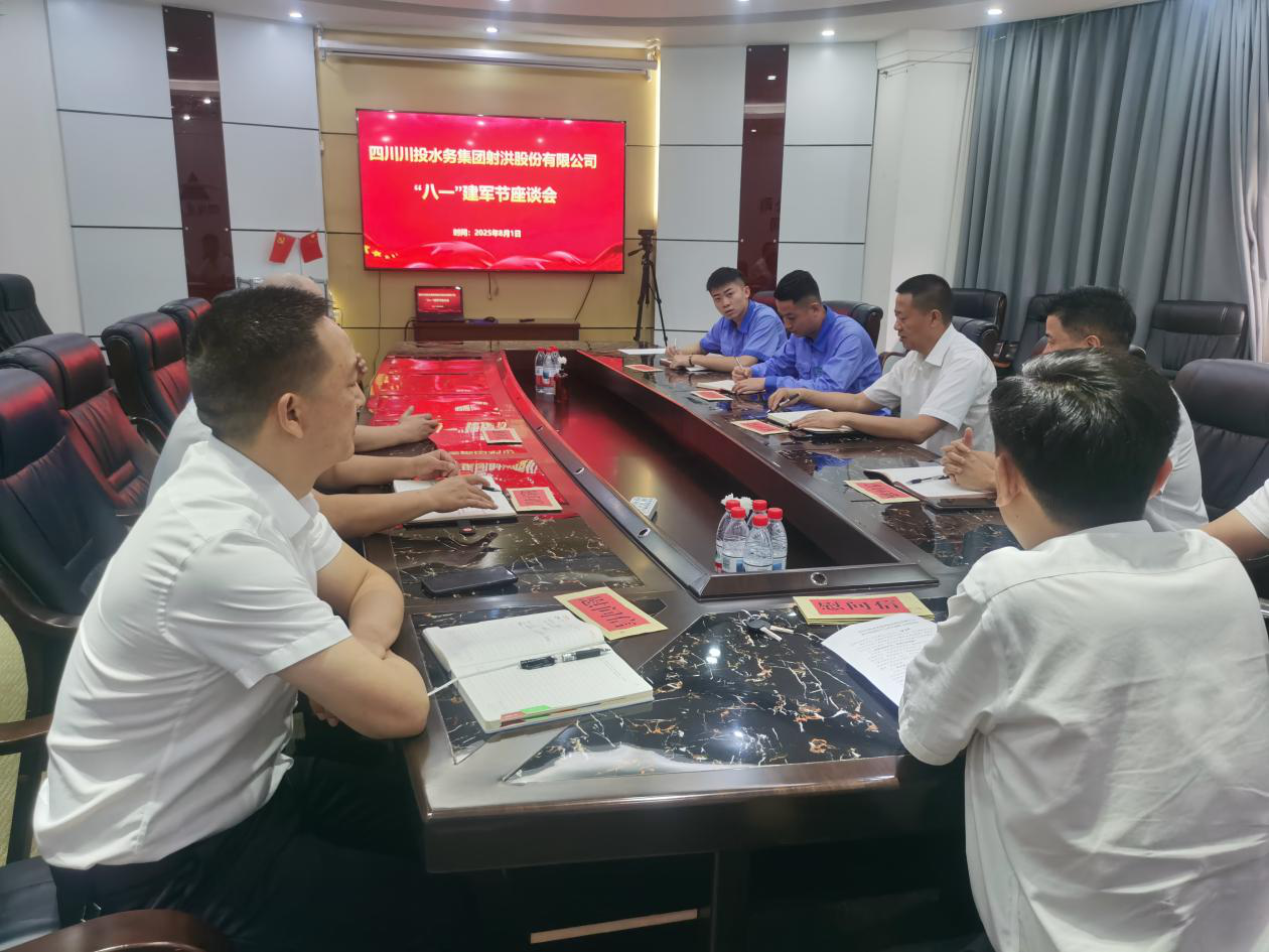 为弘扬拥军拥属优良传统,深化军民融合,2025年8月1日,川投水务射洪公司召开“八一”建军节座谈会。公司领导班子、退伍军人共13人参会。