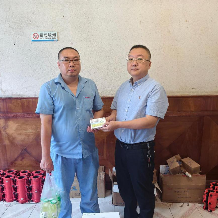 活动当天,剑阁公司党支部委员、工会主席、副总经理韩名泉率工会慰问小组成员先后前往制水厂、在建工地、抄表一线等多个工作现场。每到一处,与员工们亲切交流,详细询问他们的工作情况和身体状况,将一份份饱含关怀的荷香正气液、金银花露等防暑降温物品送到员工手中。