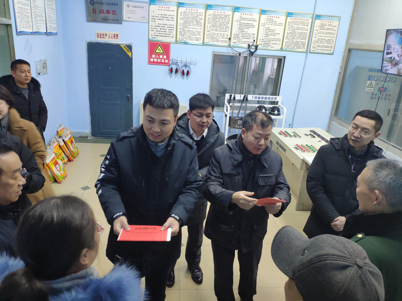 上午9时,罗总、梁董、邓总慰问了万源公司老党员、困难职工,了解他们的生活状况和困难情况,并代表川投集团和川投水务将大米、油等生活物品及慰问金送到了老党员和困难职工的手中,希望他们继续努力工作,为公司发展再作贡献、再立新功。慰问结束后,罗总一行又来到银洞子水厂厂区,开展安全环保检查。集团领导详细查看了水厂运行情况,了解了万源公司当前生产经营和城区供水保障情况,对万源公司的安全生产工作给与了充分肯定。罗总、梁董、邓总要求万源公司要提前做好水厂生产设施和供水管网的检查和检修,确保春节期间万源市城区供水安全平稳。