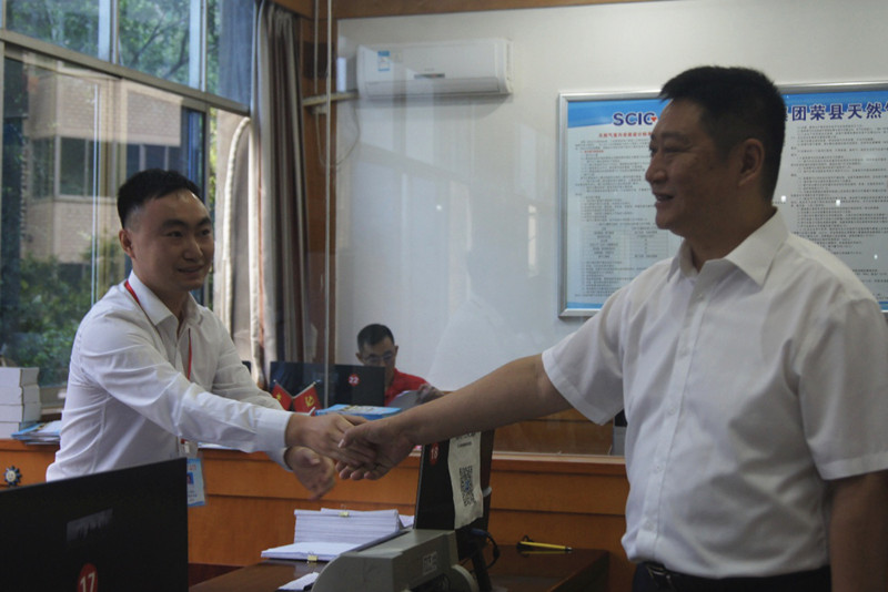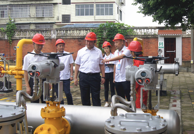 上午10:00,黄董事长一行来到荣县气司配气站、办公大楼进行视察调研,与在岗员工亲切交谈,详细了解了公司供配气状况、城市输气管网布局、安全生产、客户服务等情况。
