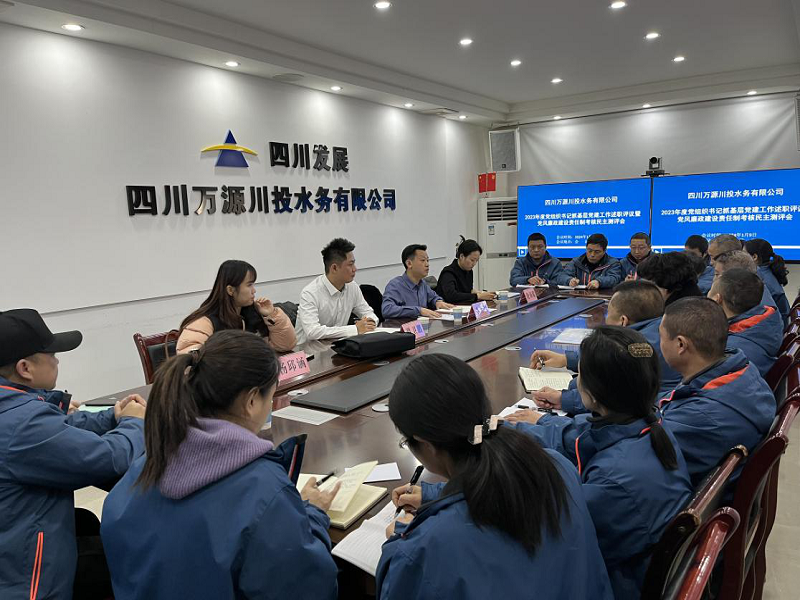 1月9日,川投水务集团副总经理谭卫鹏率考评工作组一行赴万源水司开展2023年度党组织书记抓基层党建工作述职评议暨党风廉政建设责任制考核民主测评工作。万源水司党支部书记、执行董事、总经理李至彬及领导班子、中层管理干部、职工代表参加会议。