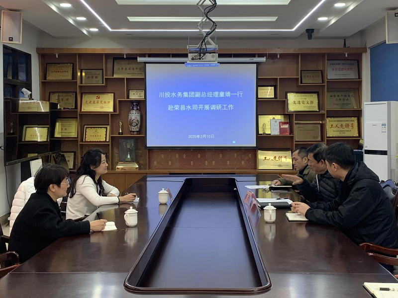 3月10日,川投水务集团副总经理童婧率队赴荣县公司调研指导生产经营工作。荣县公司党支部书记、执行董事、总经理龚庆,副总经理赵勇及相关人员陪同调研。
