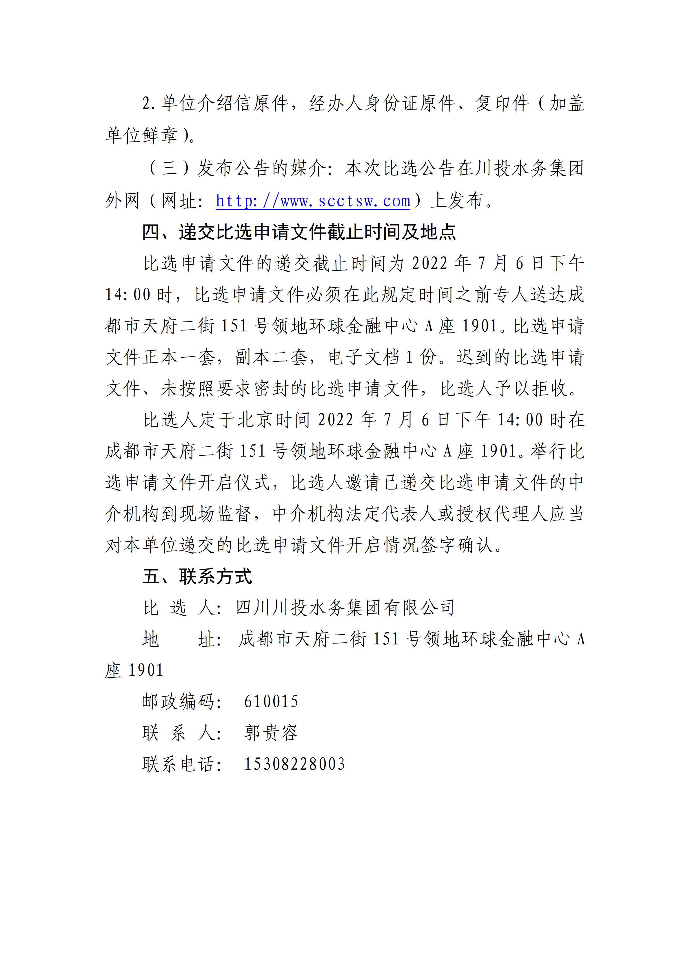 四川川投水务集团有限公司关于选聘常年法律顾问的公告