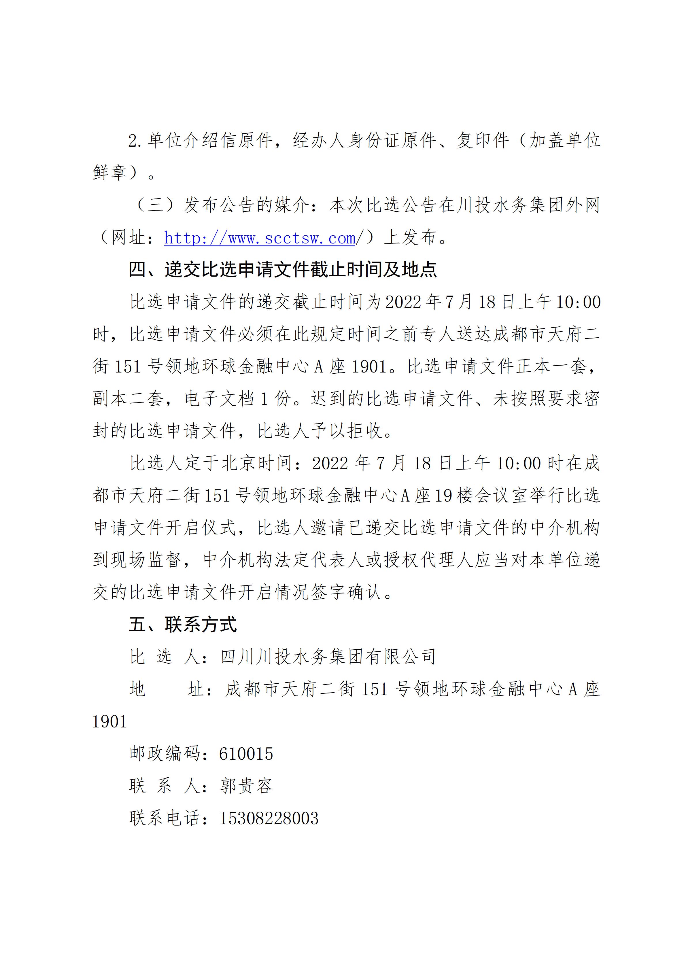 四川川投水务集团有限公司关于选聘常年法律顾问公开比选的结果公示