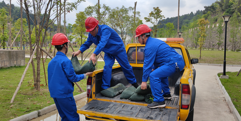 各部门迅速响应,抢险人员快速集结出动,车辆物资等后勤保障快速到位,用最快的速度赶赴险情点。装运沙袋、码袋堵漏、抽排积水、化验水质、疏通后山坡排洪沟,演练人员按照应急预案,服从指挥、各司其职、密切配合,保证了这次防汛减灾应急演练的顺利完成。