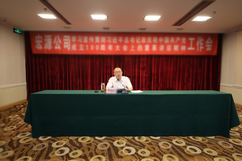 2021年7月8日下午,宏源公司在11楼大会议室召开学习宣传贯彻习近平总书记在庆祝中国共产党成立100周年大会上的重要讲话精神工作会。党员、入党积极分子、副科长及以上管理人员、支部委员、各组织负责人等88人参加会议。川投水务集团党委委员、副总经理、宏源公司党委书记、董事长、总经理李旭东主持会议。