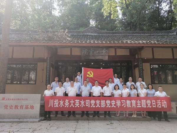 为更好地继承和发扬党的优良传统,大力营造爱党爱国爱社会主义的浓厚氛围,持续树牢“永远跟党走”的坚定理想信念,大力唱响共产党好、社会主义好、改革开放好、伟大祖国好、各族人民好的时代主旋律,认真落实习近平总书记“要让红色基因注入血脉,代代相传”指示精神,巩固深化“不忘初心、牢记使命”主题教育成果,着力引导广大干部群众把党的历史学习好、总结好、传承好、发扬好,根据川投水务大英水司党支部党史学习教育计划和七月“不忘初心再出发·奋进伟大新征程”主题党日活动实施方案,7月23日上午,大英水司党支部前往大英县象山镇象山书院红色文化党史教育基地,开展党史学习教育主题党日活动。活动受大英水司执行董事、总经理王文川委托,由大英水司党支部副书记周义双主持,大英水司党支部组织委员、副总经理、工会主席王洪先,全体党员、预备党员、入党积极分子参加活动。
