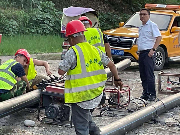 韩名泉副总经理为现场忙碌的抢险队送来了藿香正气液,办公室的同志全力作好后勤保障,为加班抢修顾不上吃饭的施工人员送来了可口的饭菜,赤化镇供水站也送来了清凉的纯净水,安全监察部仔细巡查施工安全情况。各部门有序配合,忙而不乱。经过三天两夜紧张有序的奋战,最终在18日晚上9点56分顺利完成通水。此次抢修剑阁水司共安装直径160毫米和200毫米的PE管道约300米,开挖土方约30多立方米,并在管道施工结束后,对开挖工作面回填平整恢复原貌。抢险队员们放弃了周末休假和家人团聚的时间,以高质量的抢修工作赢得了周围群众的交口称赞,他们用自己的实际行动践行了为人民服务的庄严承诺与初心。
