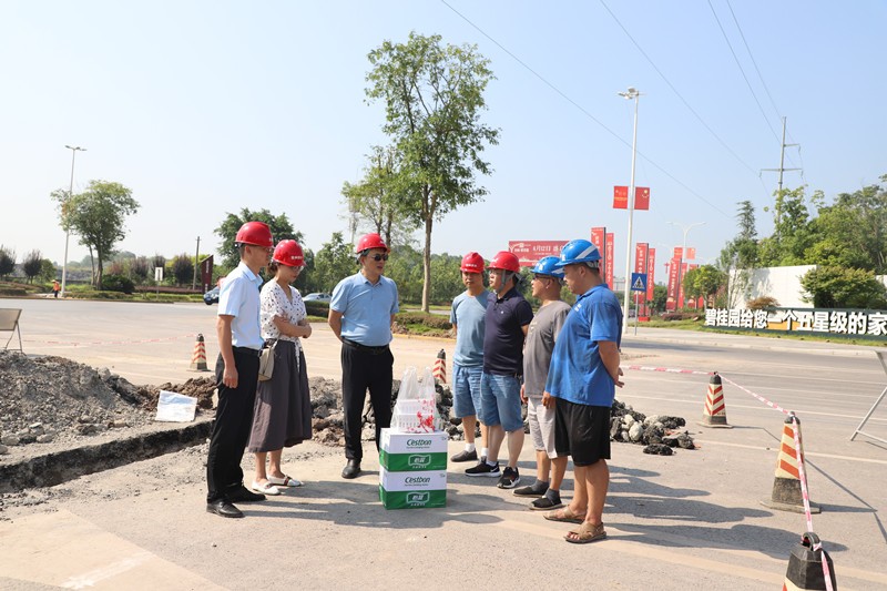 炎炎夏日,酷暑难耐。近段时间,自贡市连续发布红色高温预警,荣县城区室外最高气温已高达40℃以上。荣县水司党支部书记、执行董事、总经理龚庆率经营班子成员顶着烈日深入维修抢险和安装工程施工现场,为奋战在一线的职工送去了藿香正气液、矿泉水、清热解毒口服液等防暑降温物品。