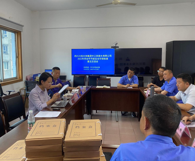 4月28日、29日,四川省生态环保集团安全环保部安全主管彭娇娇、川投水务集团战略经营管理部曹育武赴中江水司检查调研节前安全环保工作。中江水司党支部书记、董事长、总经理朱禹,常务副总经理秦荣等相关负责人陪同调研。