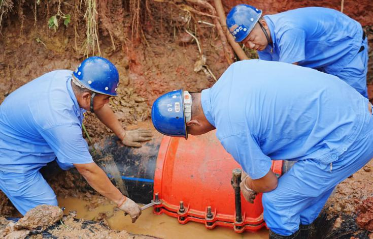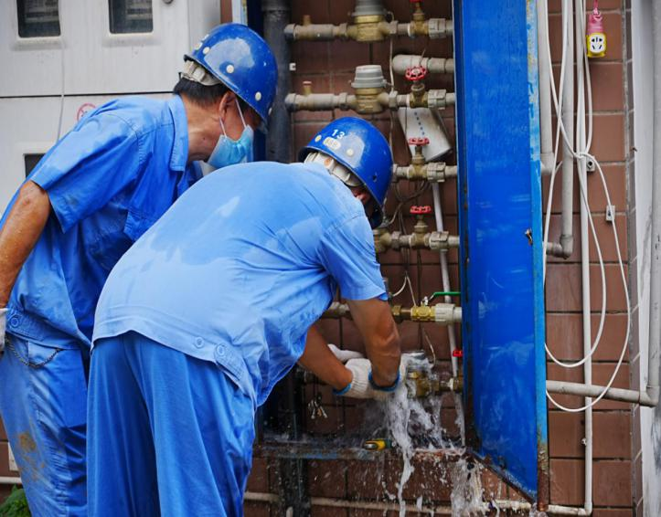 24小时值守,及时处置各类突发状况。畅通24小时供水服务热线,第一时间响应用户需求,确保事事有回应,件件有答复;安装维修队实行24小时值班,8月22日,中江县兴隆镇银河村二组部分地段因高温天气影响导致拉裂爆管,中江水司工程技术部与客户服务中心工作人员立即反应,第一时间赶到现场组织抢修。经过近12个小时连夜奋战全力抢修,于次日早上8时许完成抢修并通水。8月23日、24日上午,公司城区供水泵房再度停电,公司发电机连续高温作业出现故障,公司立即启动应急预案,与县电力公司沟通对接,紧急调配一台应急发电车,为中江水司送上了及时雨,极大缓解了县城的供水压力。