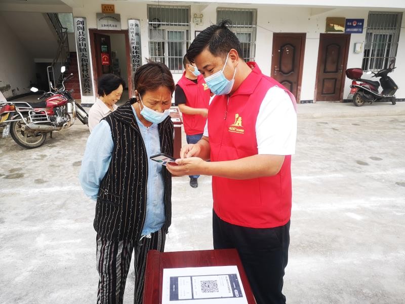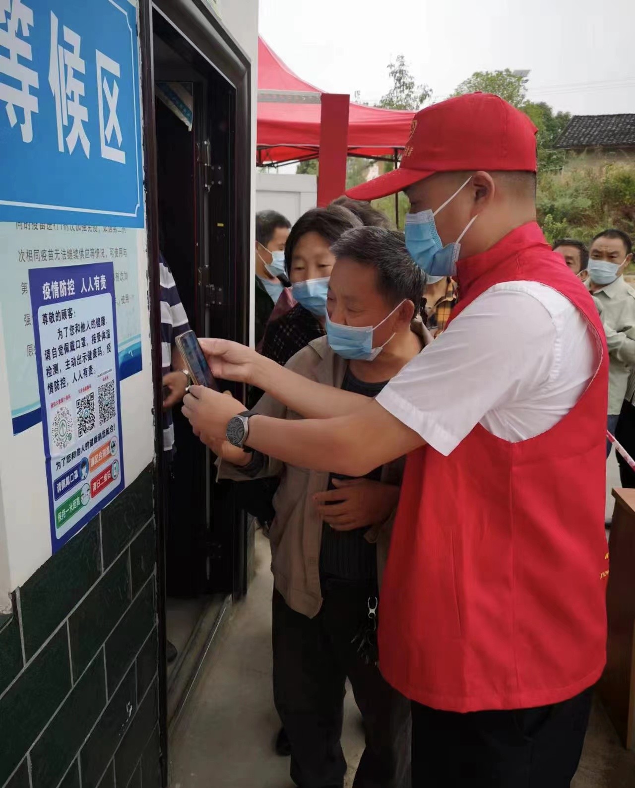 随着人流量不断增加,队员们又主动承担起维持秩序、引导扫码测温等工作。“请您带好口罩,出示行程码,扫场所码!”由于农村地区老年人居多,对核酸检测程序不了解,队员们不厌其烦地一遍又一遍地重复着引导语。有的老年人没有智能手机或者不会使用,他们又主动帮助其核实身份信息、绑定“天府健康通”APP等等,让采样过程更加流畅,效率大大提高。经过一天的努力,涂山镇全域全员核酸采样完成,无一人漏检。