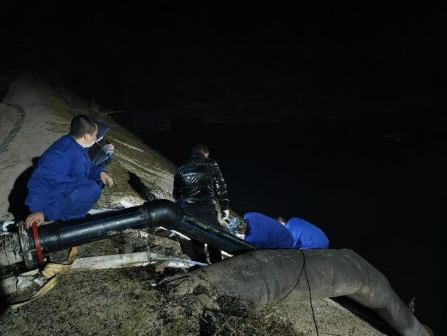 1月4日,公司抽调生产部、工程部的技术骨干人员,组建水源保供攻坚小组,在刘家河水库开展闸阀堵漏和提水抽水工作。小组兵分四路,一路驻扎刘家河围堰,安装发电机和抽水泵,将水库大坝下游的水抽到大坝内,并对输水管道闸阀漏水点开展堵漏;一路开展全城区主供水管道探漏堵漏,最大程度减少水资源浪费;一路积极和电力部门协调联系接通高压线路,力争在最短时间完成抽水管道安装;一路积极沟通协调相关部门,在普安周边寻找可用水源,尽可能向普安补充原水。