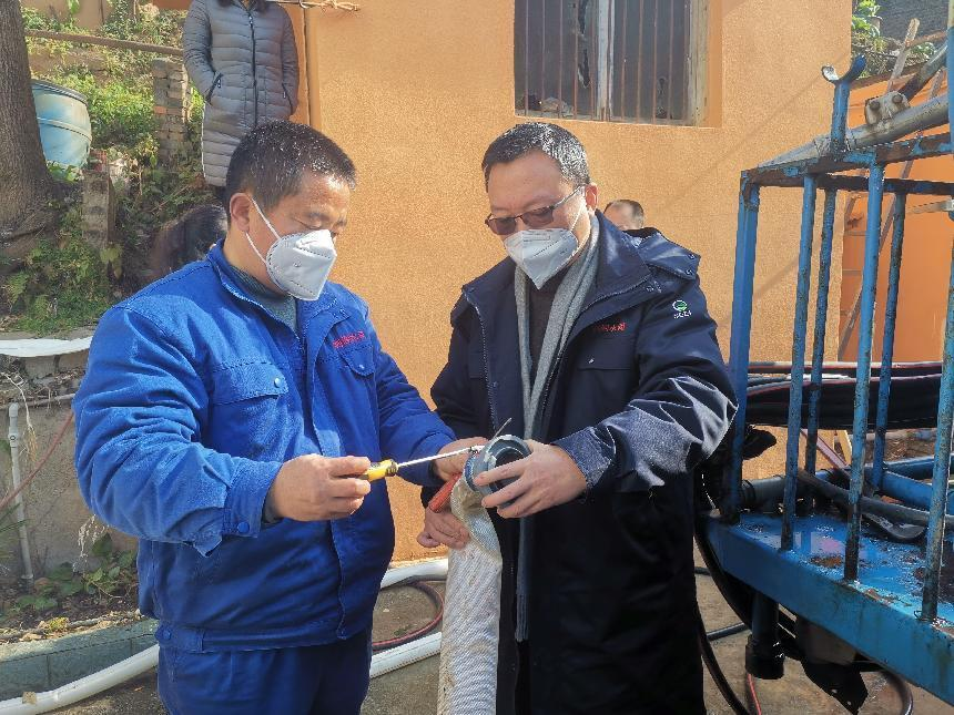 1月4日,公司副总经理韩名泉率工程部人员前往普安镇调研供水情况,并与当地社区工作人员交流当前自来水供应情况和居民述求,并当即将相关情况汇报给公司,着手安排部署从下寺调水送水保障居民基本生活用水。