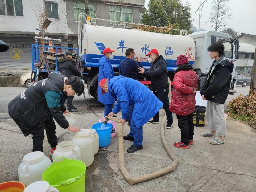 经过多方沟通,1月5日上午,在县住建局的协调下,公司借用园林所洒水车正式从下寺向普安送水。“大家快出来接水!”当听到工作人员的呼声后,居民们纷纷从家里出来接水,有的拎着水桶,有的拖着水管,有的扛着抽水泵.....看见渐渐灌满的蓄水池和水桶,居民们脸上洋溢着满意的笑容,大家纷纷说到:“感谢川投水务为我们送来饮用水,这是实实在在替我们老百姓办实事啊!”