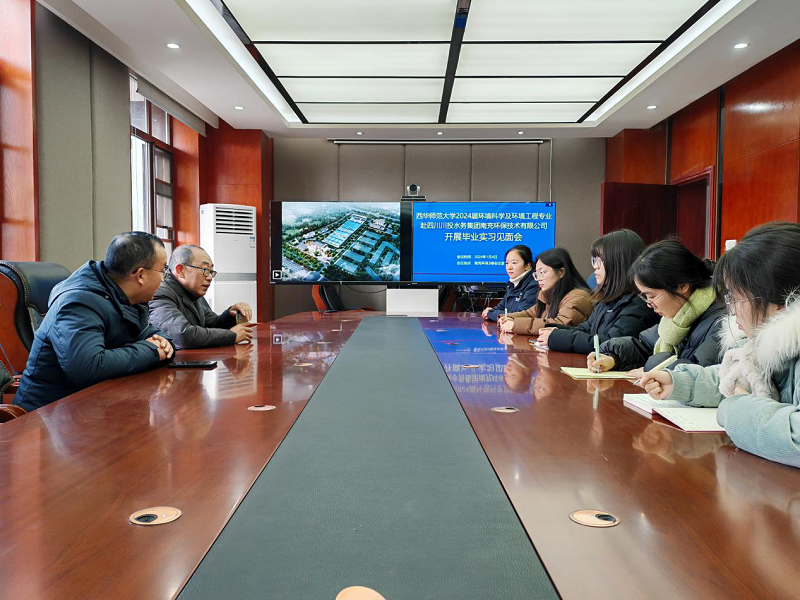 1月4日,西华师范大学环境科学及环境工程专业4名学生赴四川川投水务集团南充环保技术有限公司开展毕业实习。南充环保党支部书记、董事长、总经理杨旭东在三楼会议室主持召开了实习见面会,并带领学生实地参观了公司污水处理厂。
