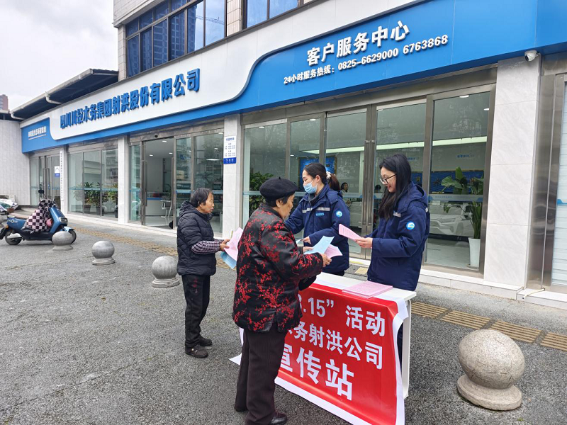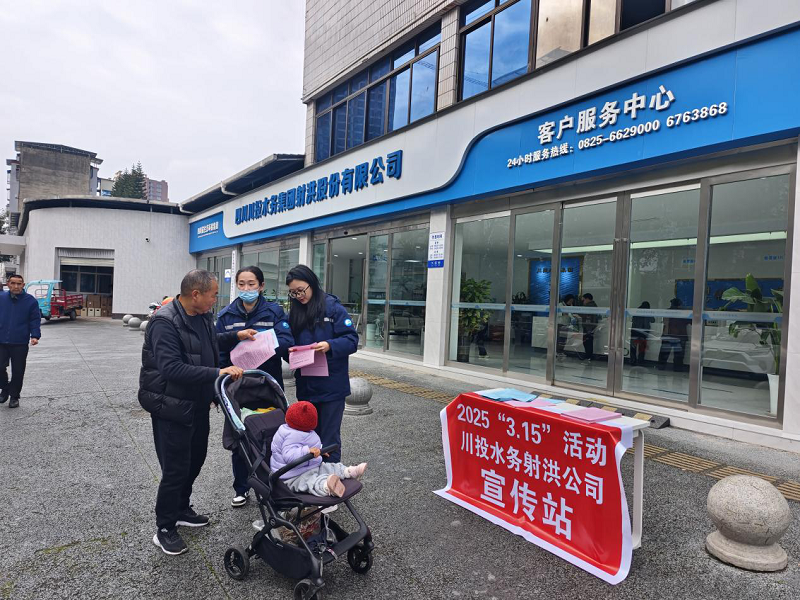 3月15日是国际消费者权益日,为了共建诚信社会,进一步提升公司服务水平和市民满意度,川投水务射洪公司积极开展了以“保障水质安全、优化供水服务”的宣传活动。